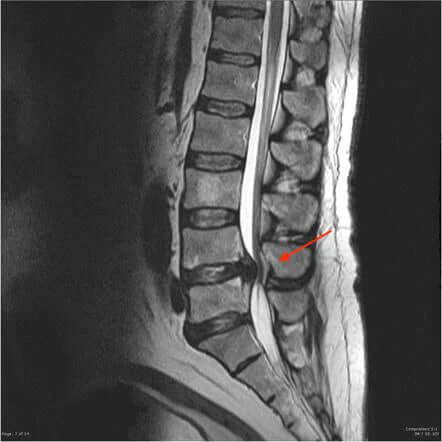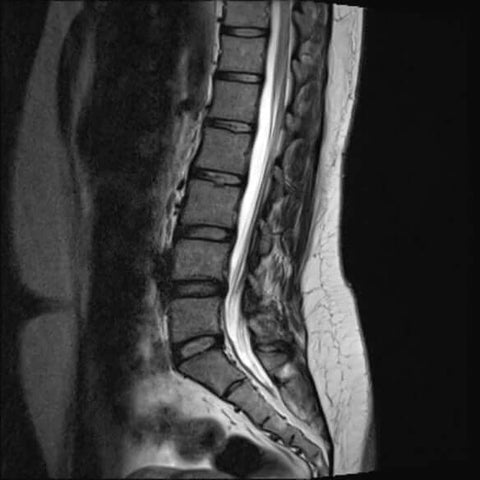 Ecco i raggi X di un rachide lombare di una persona affetta da compressione vertebrale.